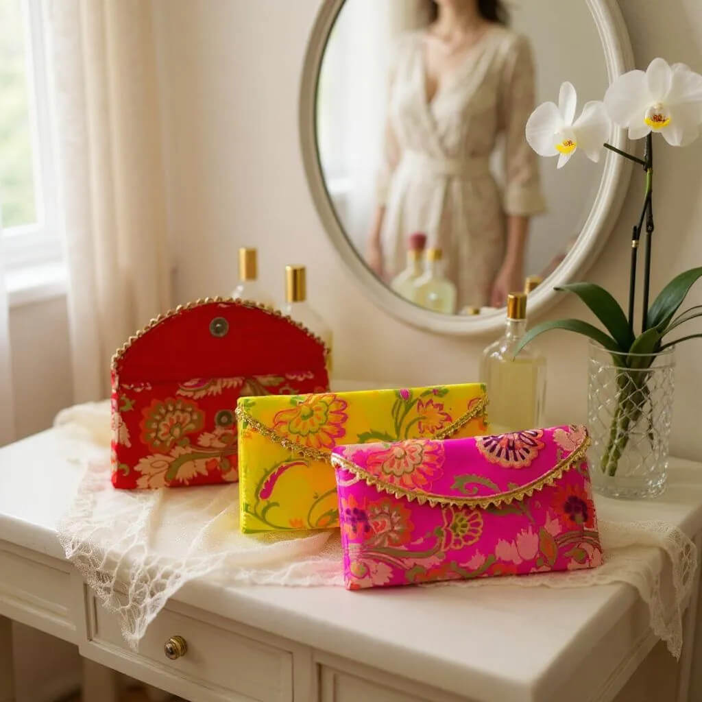 Floral Banarasi Silk Cash Envelope