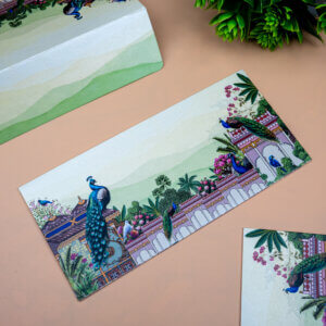 Celebrate the beauty of nature and tradition with these stunning money envelopes featuring a picturesque scene of majestic peacocks in a serene garden setting. The vibrant colors and intricate detailing make these shagun lifafa envelopes perfect for weddings, festivals, and special occasions. Crafted with premium materials and a fine artistic touch, these envelopes add elegance and cultural significance to your monetary gifts, making them a thoughtful and memorable choice for your loved ones.
